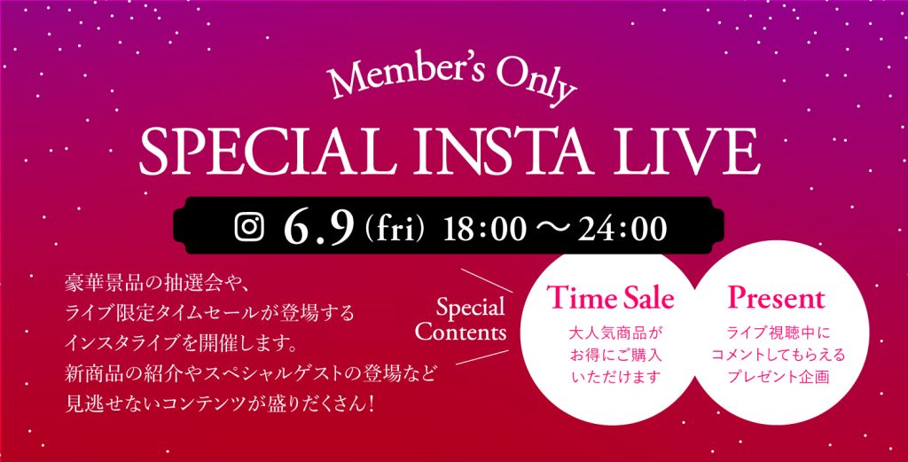 • 6月9日(金)18:00~24:00「Member’s Only SPECIAL INSTA LIVE」開催決定!
