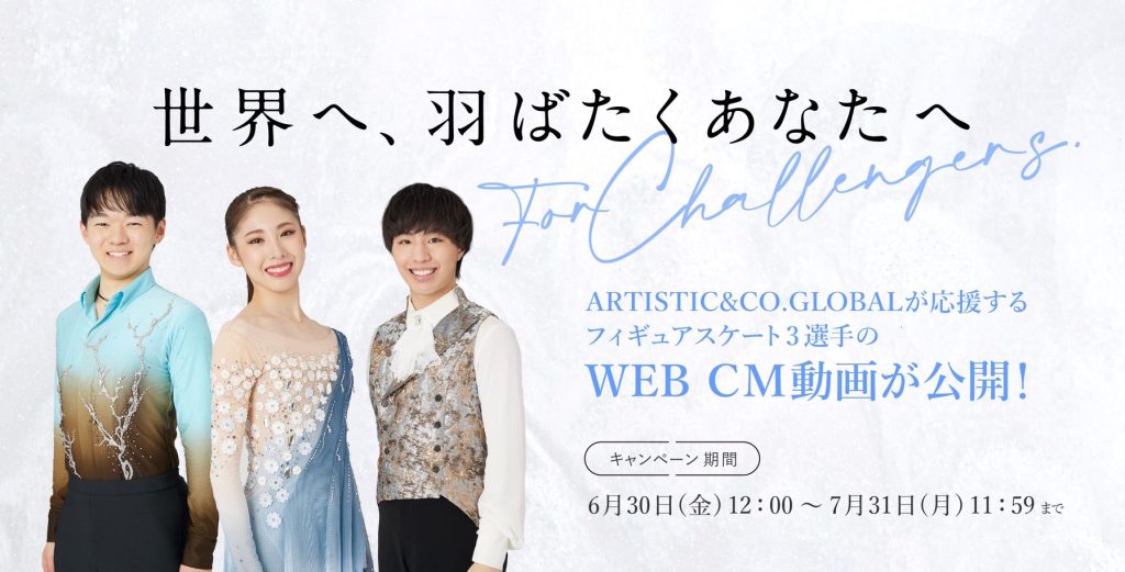 同社がサポートしている鍵山優真選手、住吉りをん選手、三浦佳生選手が出演する新CM「世界へ、羽ばたくあなたへ〜For Challengers.〜篇」の公開を記念して、プレゼントキャンペーンを実施する他、数量限定商品を販売します。