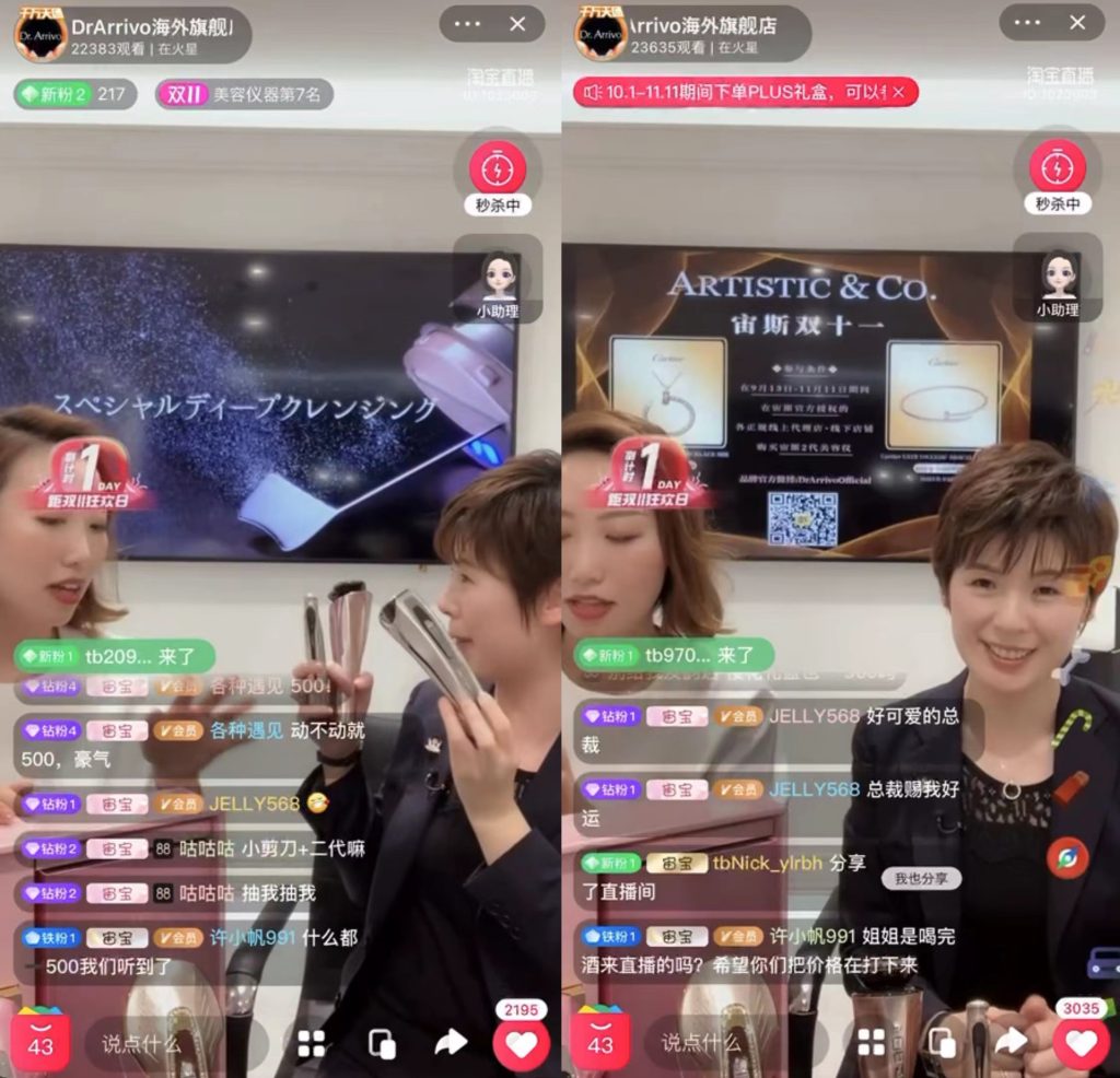 ライブコマース配信画面 2021年11月10日「ダブルイレブン(独身の日)セール期間」